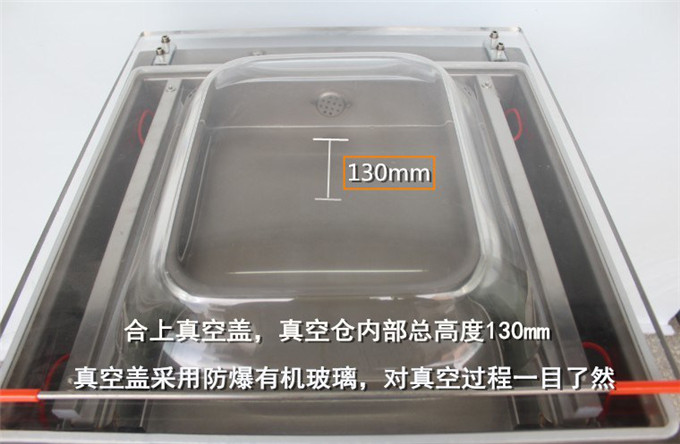 2:本機蓋采用全透明有機玻璃,對包裝過程一目了然。本機具有抽真空、封口一次完成功能,對不同的包裝材料和包裝要求,該機設有真空時間、熱封時間等調整裝置,以達到理想包裝效果, 本機可根據(jù)用戶的要求,配備換字方便、印字清晰的印字裝置,即在封口的同時,在封口線上印上保質期、出廠日期或出廠編號,以符合國家食品標簽法的規(guī)定;