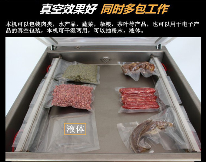 本機具有設計先進、功能齊全、性能穩(wěn)定可靠、適用范圍廣、封口強度好、使用維修方便等特點,是目前較理想的真空包裝機。