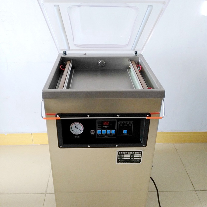 2:本機蓋采用全透明凸蓋有機玻璃設(shè)計,增加內(nèi)部空間.對包裝過程一目了然。本機具有抽真空、封口一次完成功能,對不同的包裝材料和包裝要求,該機設(shè)有真空時間、熱封時間等調(diào)整裝置,以達到理想包裝效果, 本機可根據(jù)用戶的要求,配備換字方便、印字清晰的印字裝置,即在封口的同時,在封口線上印上保質(zhì)期、出廠日期或出廠編號,以符合國家食品標簽法的規(guī)定;